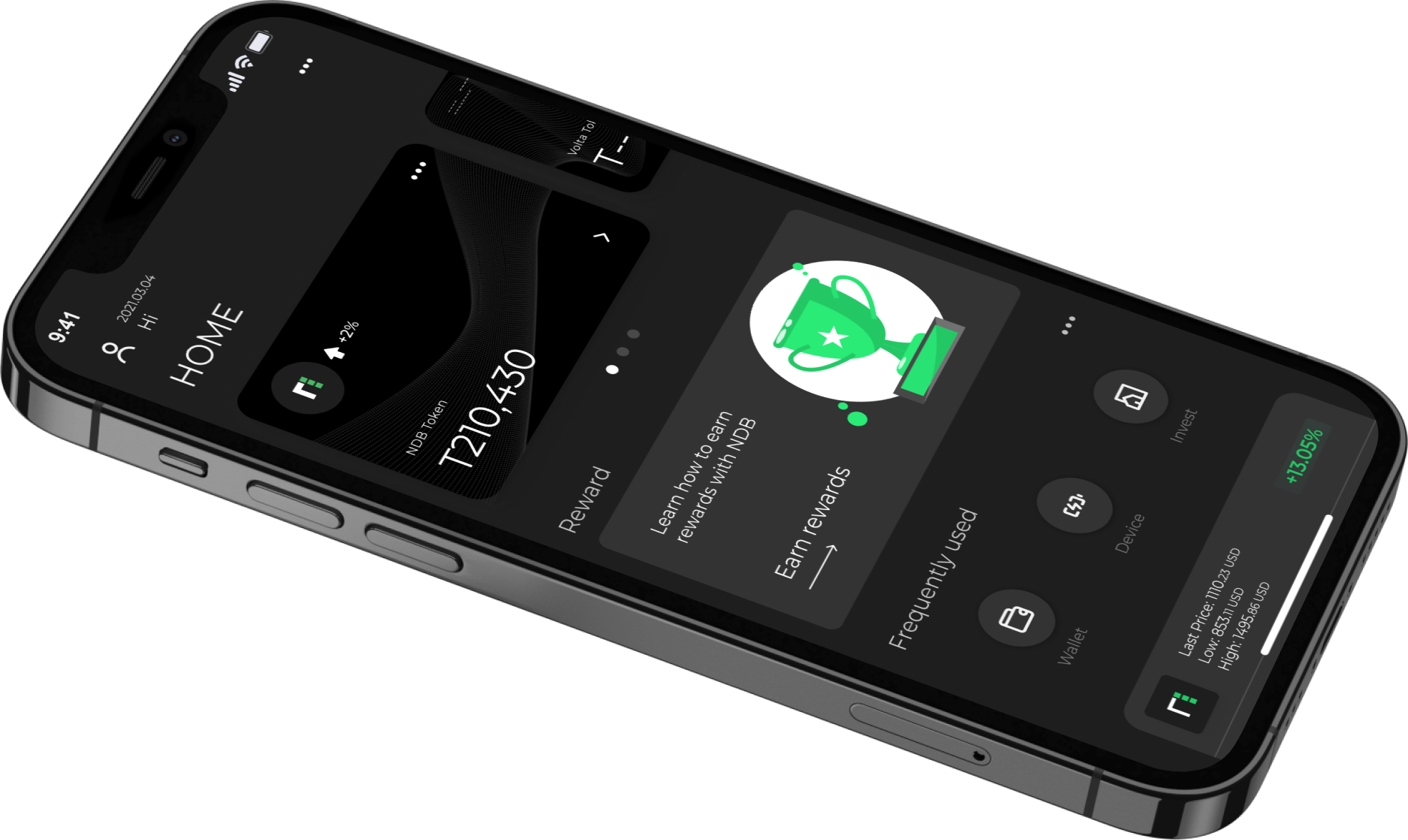 Using NDB App, you can trade, stake, and earn tokens.